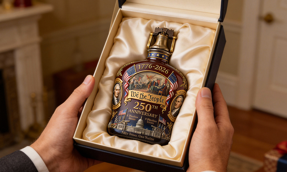This commemorative decanter is crafted to stand out in any setting — from a home bar to an office shelf. Its bold design and historic symbolism make it an instant conversation starter and a lasting reminder of what it means to be American.
